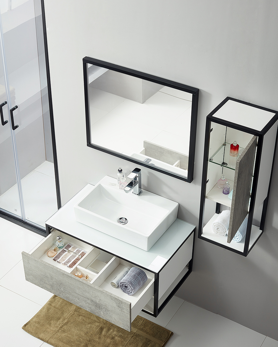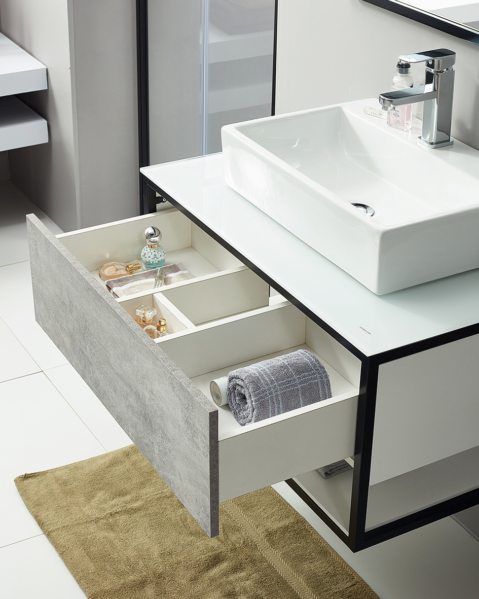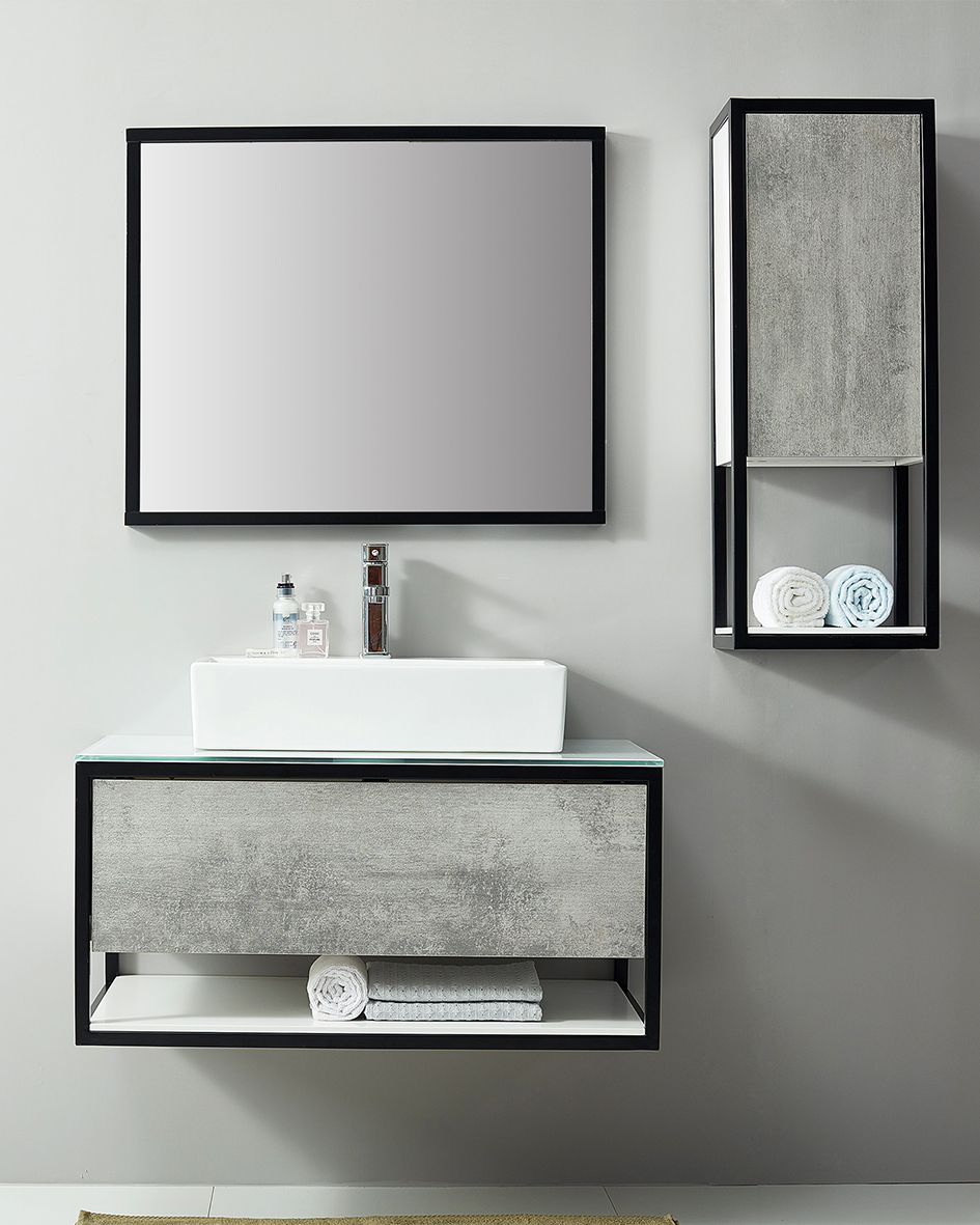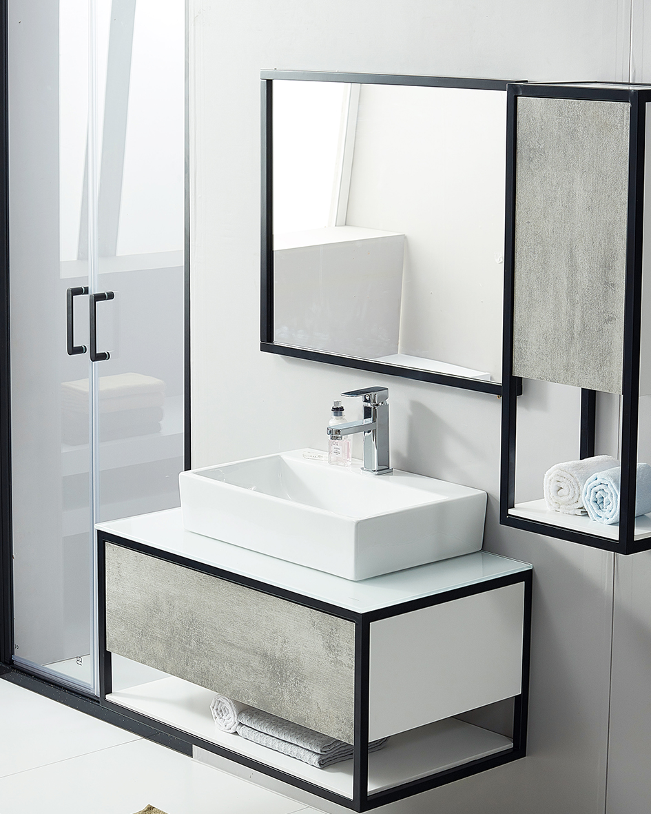 - With 1 drawer for vanity cabinet with black steel frame;