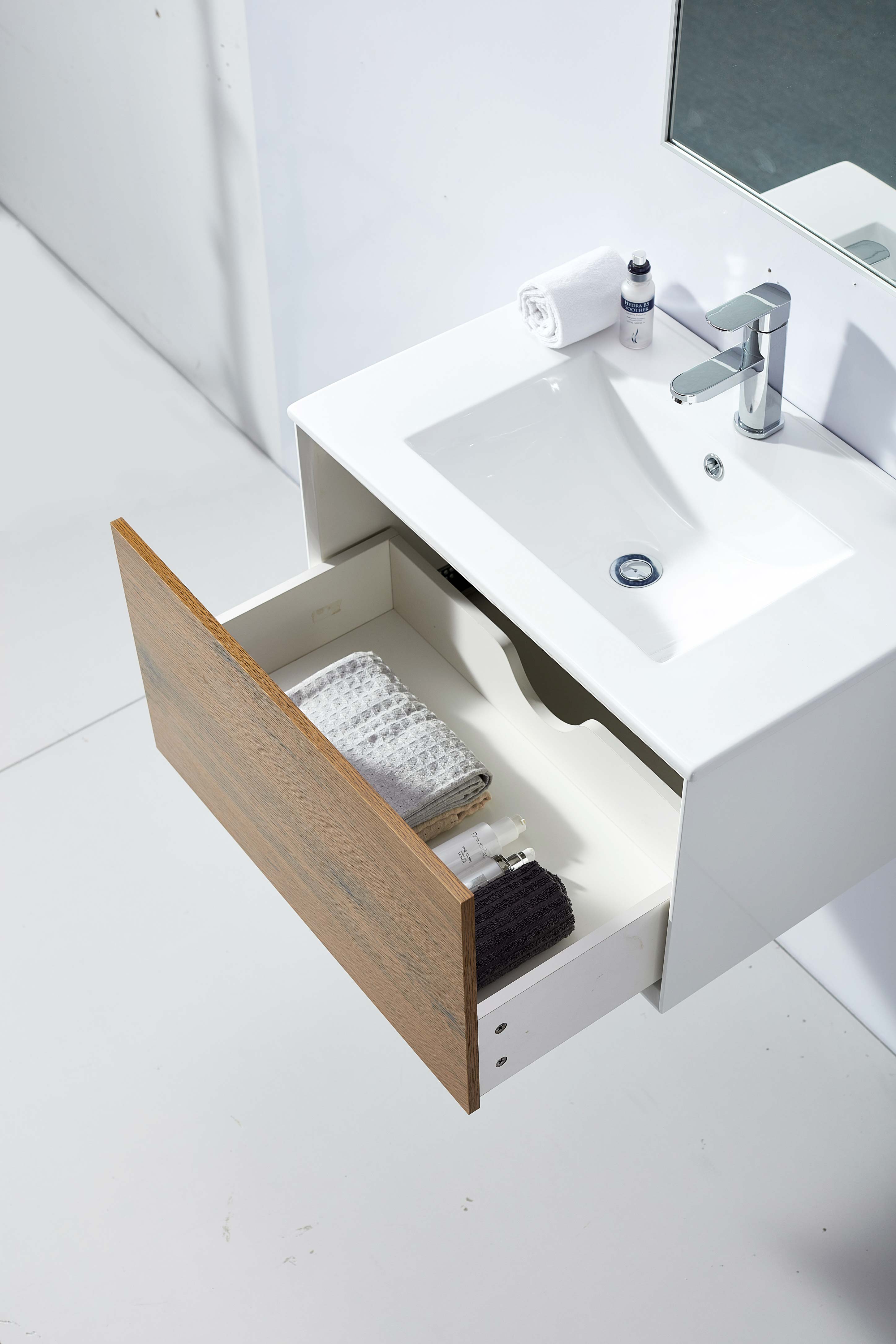 age melamine on the drawer face;
